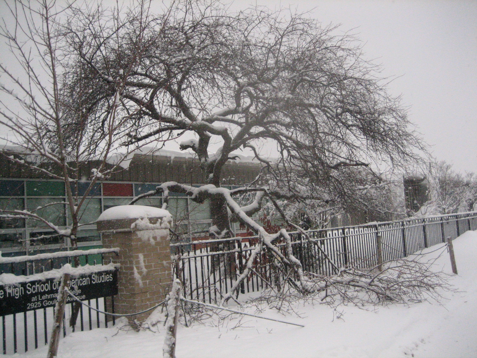 First stop was my school; a tree lost a branch, crunch, into the garden.