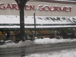It wasn’t really a snow-i-cane, just a storm. But Friday morning I decided I wanted to make soup, and decided to trudge to Broadway for ingredients: