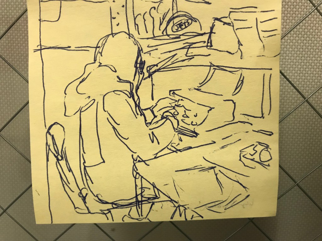 I have also recovered three sketches of students typing. I think I’ll keep the Smith Corona in the office for a while.