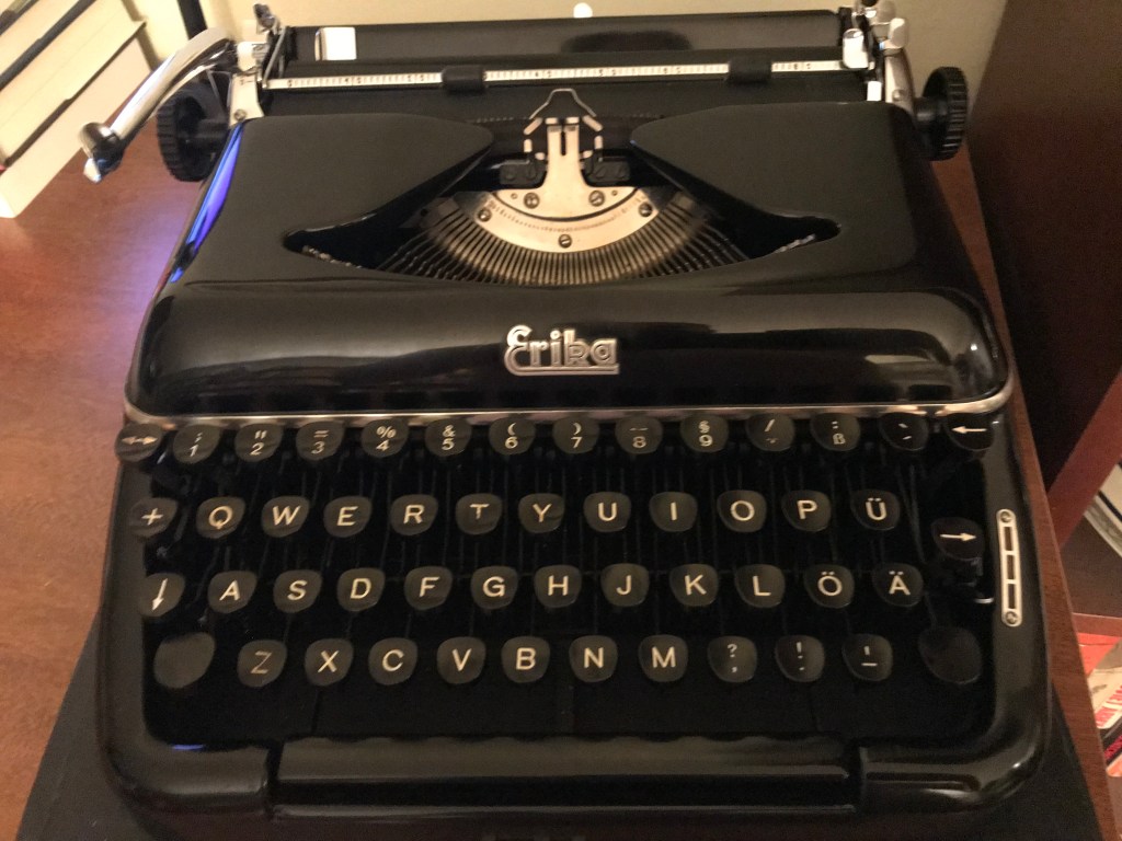 And I thought of Das Leben der Anderen and read about the Groma. Turns out, the quality of this East German machine was quite high. Digging deeper, Olympia wasn’t really Olympia – it was a new West German company that took over the name. The original, rebranded Optima, continued to be produced in the DDR. And then I happened on it – Erika. A typewriter called Erika. The company has a name, Seidel & Naumann but they left it unobtrusive. Erika was the name of the typewriter. After the war the name of the company was eventually changed, more than once, but the typewriter remained Erika. Precision. Quality. Beauty. And I bought one. From 1958. Here: