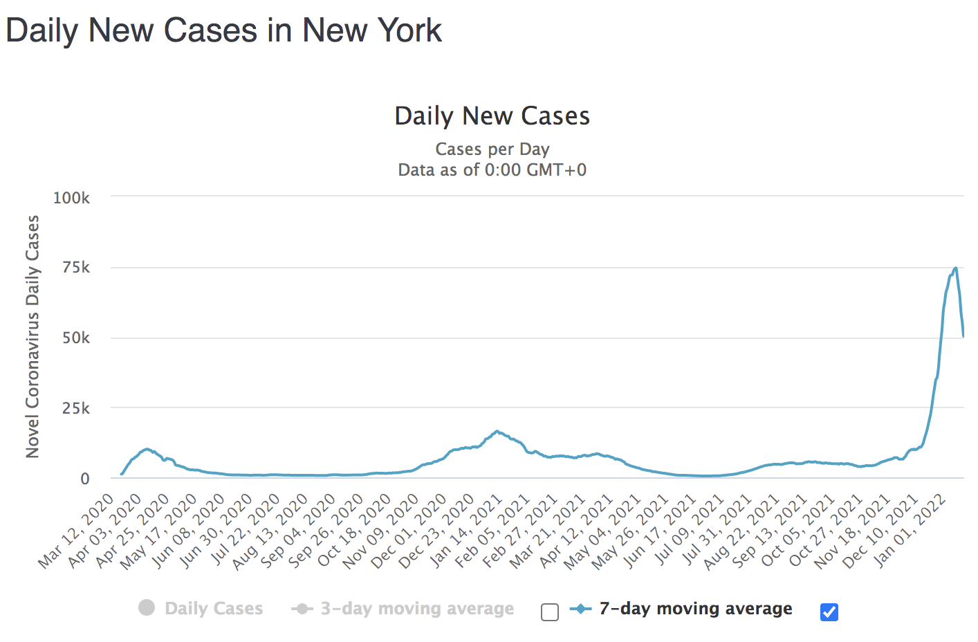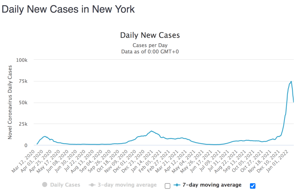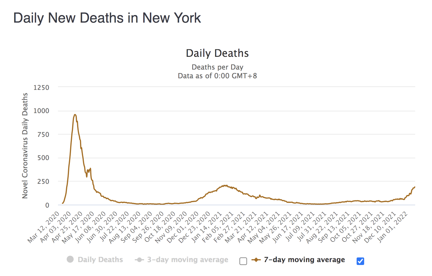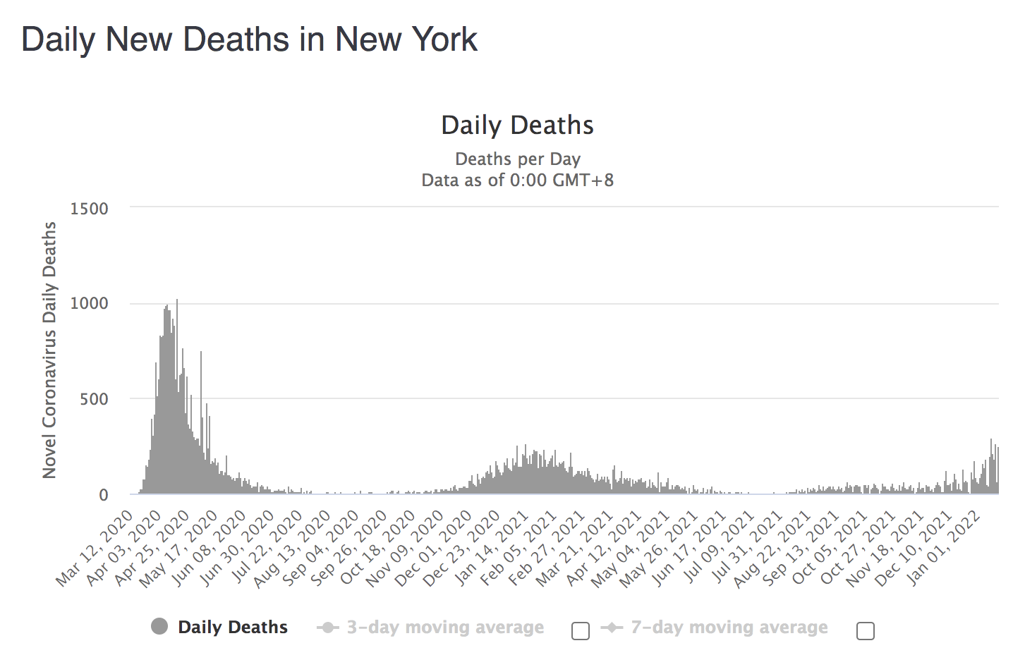You can also see above the cases dropping (New York State, no City). But you can also see below, the number of people dying is as bad as last winter, which was pretty bad. Want to keep that in mind and be careful how we use the term “mild.”
