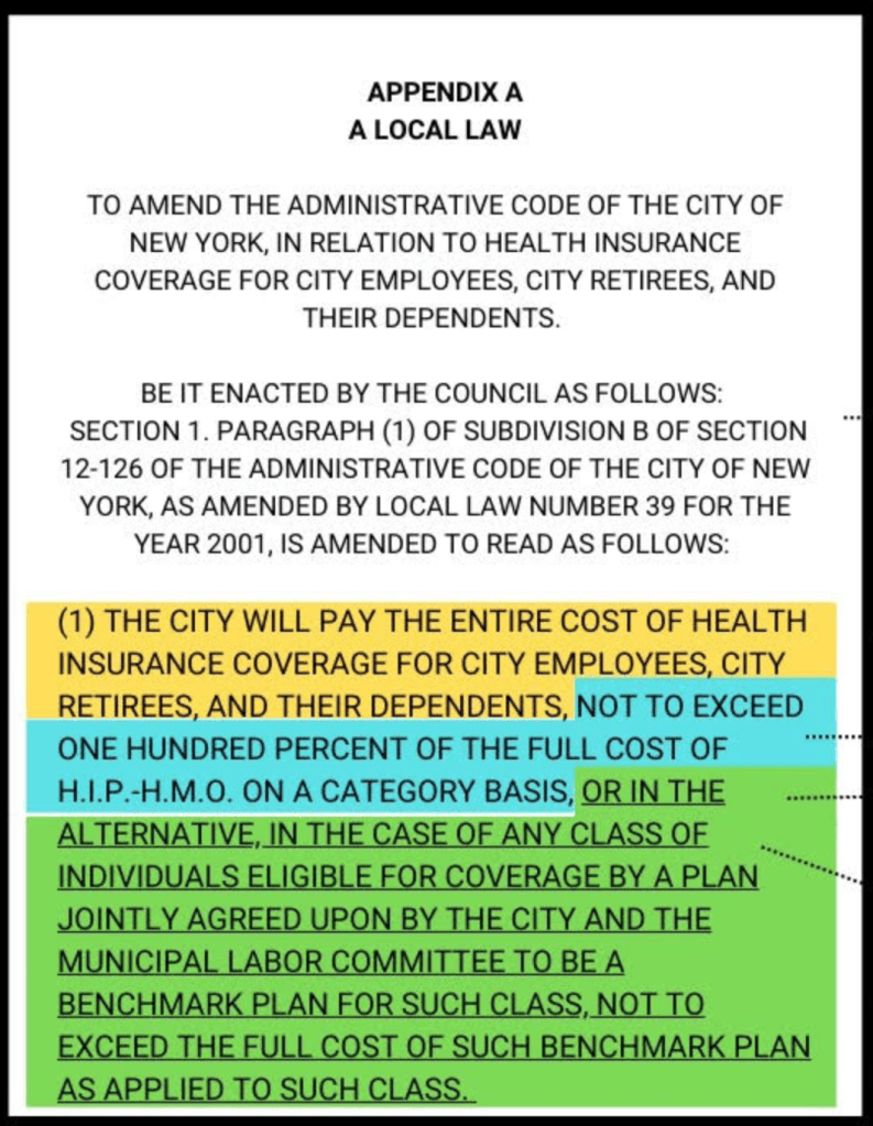 Benchmark? The current benchmark is HIP. $919/month. The future benchmark? It could really be anything. As we see with the City’s letter (Campion to Nespoli) and as we will examine further, whoever negotiated for the unions in 2018 effectively ceded decision-making power to an arbitrator, Martin Scheinman, who has not been kind to workers (he was the one who said we shouldn’t have had to work through break in April 2020, but that the City didn’t have to pay us. When the City decided not to pay us part of our lump sums, money they had owed us for years, he was the one who said that’s okay, as long as you pay them later).