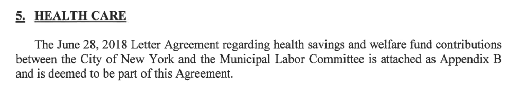 The 2018 contract ratified an earlier agreement that was not shared with the UFT membership. The memorandum of agreement has a health care heading, but it just says to see Appendix B.