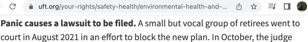 Pay attention. Every communication from Campion, from Scheinman, from Mulgrew – they all talk about amending 12-126. Every UFT webpage on healthcare either asks you to change your position on 12-126, or links you to a page that makes that ask. Every not from your District Rep – same. They want you scared – so they can flip you on 12-126. So…