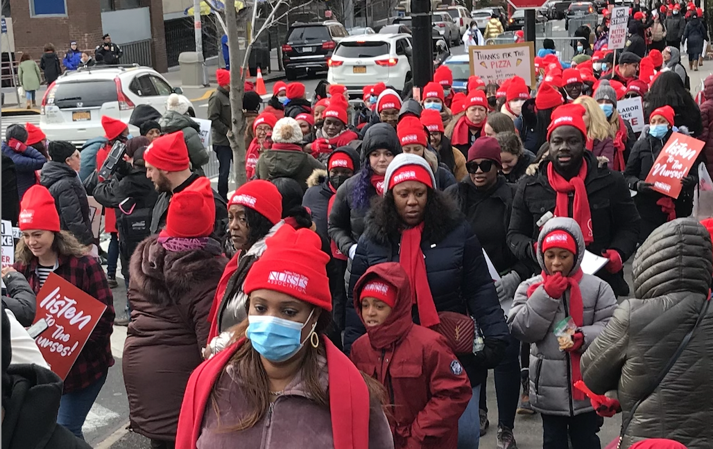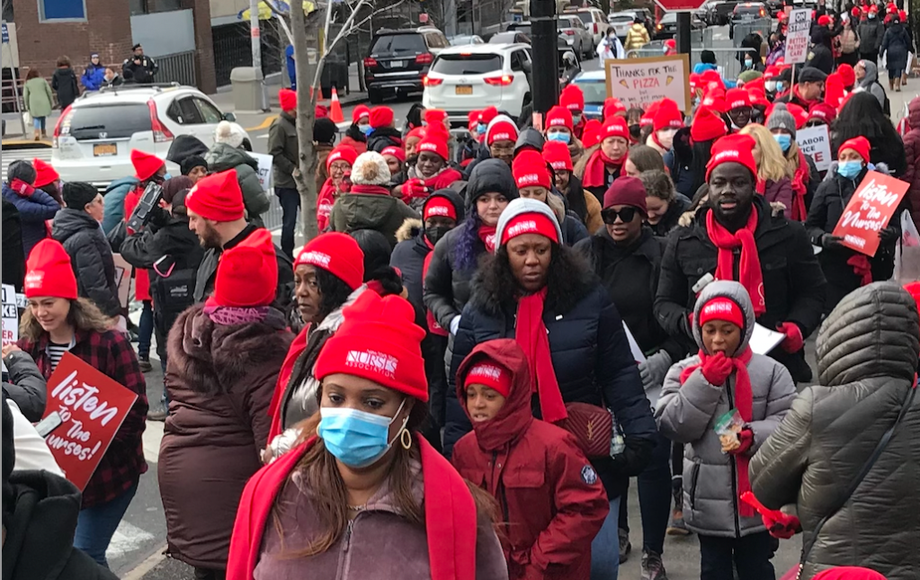 Nurses (NYSNA) at Montefiore and Mount Sinai struck on Monday. Primary issue? Staffing levels. Understaffing compromises patient care, and burns out nurses. Understaffing means nurses can be recruited, but move on – retention is horrible. “Safe staffing – Saves lives!” was the number one chant.