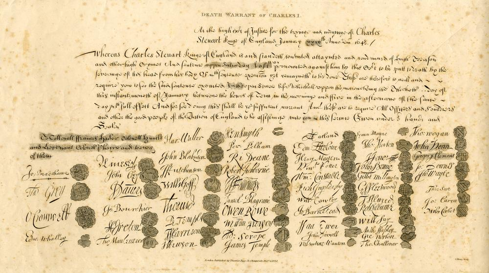 Three lived in New Haven: Whalley, bottom of the first column, right under his cousin, Oliver Cromwell. His son-in-law Goffe, third in the third column. And a minister, John Dixwell, next to last in the fifth column. They came to New Haven after having made sure that Charles I was nobody’s king.