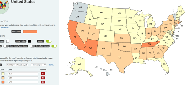 COVID rates, by state, mapped, mid-month and end of the month, from Thanksgiving to today.
